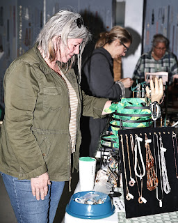 Julie Jones checking out the jewelry. Lot's of tables and wall racks with everything the well dressed woman would want to wear, and the proceeds going to The Schoharie County Animal Shelter.